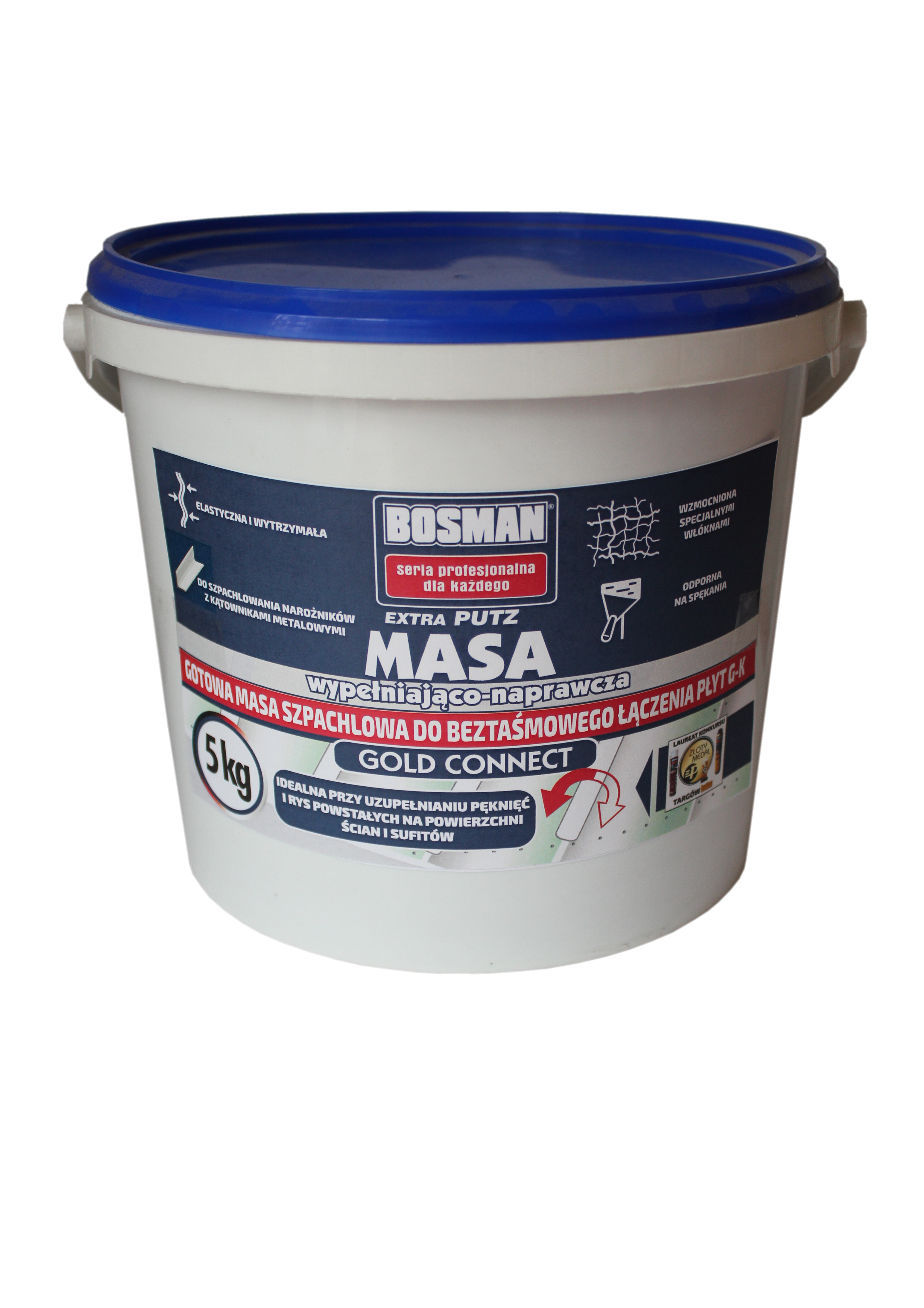 Bosman Extra Putz Filling and Repair Compound is a repair compound with the addition of specialized fibers. It is ideal for joining plasterboards. For renovating interior walls and ceilings in dry rooms, on all typical construction substrates, including deformable surfaces and old paint coats. For filling both small gaps, holes, and cracks, as well as filling larger gaps.